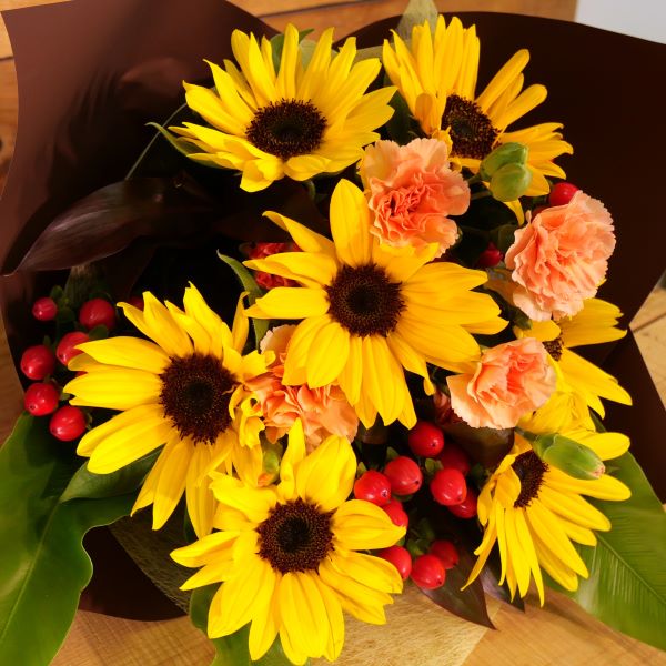 ラッピングやひまわり以外の花材につきましては市況により予告なく変更になる場合がございますので予めご了承願います。